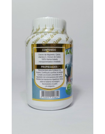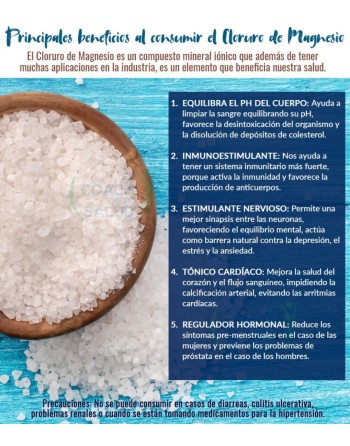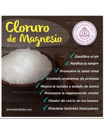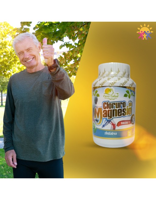 El magnesio es un compuesto químico que resulta fundamental para el correcto funcionamiento de nuestro organismo, almacenado sobre todo en nuestros huesos, así como el de las plantas. Se trata de un mineral iónico formado por cloro y magnesio (MgCL2) que proviene principalmente del agua del mar. Este producto viene reforzado con calcio y vitamina C.
