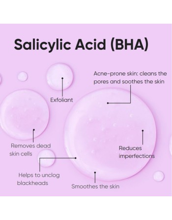 El ácido salicílico pertenece a una clase de medicamentos llamados agentes queratolíticos, un compuesto orgánico que se encuentra en plantas como el sauce, debido a su capacidad natural para favorecer la exfoliación, lo que ayuda a proteger la planta de infecciones bacterianas. Es un tipo de beta hidroxiácido (BHA) que está disponible en diferentes concentraciones, cada una de ellas preparada para un fin concreto. De mayor concentración para tratar el melasma, manchas oscuras y el acné, al reducir la inflamación y el enrojecimiento y destapar los poros obstruidos de la piel para permitir que los granos se reduzcan. El ácido salicílico penetra profundamente en la piel, donde descompone las células muertas que, de otro modo, obstruyen los poros. Las bacterias del acné se desarrollan en entornos sin oxígeno, por lo que los poros obstruidos resultan ser el lugar perfecto. El ácido salicílico elimina el exceso de sebo y las células muertas de los poros obstruidos, permitiendo que el entorno sea menos adecuado para el crecimiento bacteriano. Esto eliminará las bacterias en un alto porcentaje y tendrá un gran impacto si eres propenso a tener manchas en la piel.