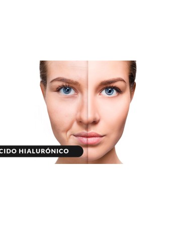 El ácido hialurónico (AH) es un polisacárido. En el ser humano, es abundante en la piel, y está presente en el humor vítreo, el cordón umbilical, el líquido sinovial, el tejido esquelético, las válvulas cardíacas, el pulmón, la aorta, la próstata, la túnica albugínea, los cuerpos cavernosos y esponjosos del pene. Es producido principalmente por células mesénquimas además de otros tipos. El ácido hialurónico está constituido por cadenas de carbohidratos complejos, en concreto unos 50.000 disacáridos de N-acetilglucosamina y ácido glucurónico por molécula y deriva de la unión de aminoazúcares y ácidos urónicos. Señalamos algunas de sus multifacéticas propiedades y beneficios: El ácido hialurónico tiene un efecto positivo en el envejecimiento intrínseco, aquel que se produce por el mero transcurso del tiempo, y también en el envejecimiento extrínseco, producido por factores medioambientales externos. Es responsable de mantener los niveles de humedad de la piel, ya que posee la propiedad de retener agua. El ácido hialurónico contrarresta el efecto del envejecimiento en la piel, en particular la formación de arrugas, reemplazando el volumen de líquido perdido; además incrementa la producción de colágeno y afecta la morfología de los fibroblastos. Su utilización destaca en relleno y contorneado de los labios y pómulos, así como para alisar la frente y las marcas cutáneas, aunque también se administra para reducir las cicatrices del acné severo y otros problemas cutáneos que ocasionen pérdida de piel. El ácido hialurónico se inyecta donde no hay músculo justo bajo la piel, donde está la arruga. Asimismo, se emplea en clínicas de fertilidad, en el aumento de volumen de los tejidos y como suplemento nutricional para las articulaciones en tratamientos por dolores en las mismas o con osteoartritis y para el tejido conjuntivo o conectivo. El ácido hialurónico puede también eliminar los radicales libres, los subproductos dañinos para el tejido derivados del metabolismo del oxígeno, que pueden provocar inflamaciones y cáncer. Posee la capacidad de retener el agua en un porcentaje equivalente a miles de veces su peso. Es por ello que se emplea para hidratación de la epidermis ya que reconstituye las fibras que sostienen los tejidos de la piel, dando una mejor forma a la piel. El efecto del ácido hialurónico en las articulaciones puede acelerar la recuperación después de un esguince de tobillo. Excelente para artrosis en las rodillas ya que aumenta el líquido sinovial. Reduce artritis e inflamación.