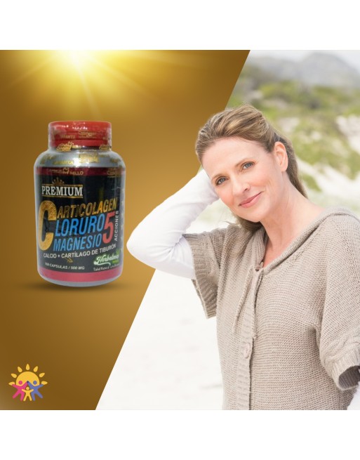 Este excelente producto contiene cloruro de magnesio, calcio vegetal, cartílago de tiburón, cola de caballo, arándano azul y otras plantas antiinflamatorias. Tiene 5 acciones: desinflama, regenera, fortalece, elimina ácido úrico, reduce los niveles altos de colesterol. Reduce los dolores reumáticos y artríticos, fortalece los huesos. Mejora la tonicidad muscular. Ayuda a reducir la inflamación y promover la regeneración del tejido muscular. Desvanece arrugas y estrías. Detiene envejecimiento prematuro. Nutriente completo para todas las edades.