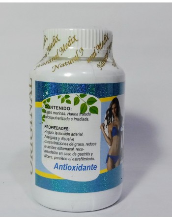 Algas marinas. Antioxidante. Quelantes. Compuesto a base de algas marinas. ¿Qué hace por ti? Protege tu salud intestinal, equilibra su flora. Las algas son quelantes, eso quiere decir que tienen la capacidad de absorber toxinas y metales pesados acumulados en el organismo y expulsarlos del cuerpo. Además, se considera un súper alimento. Tienen propiedades antibacterianas, antiinflamatorias y antioxidantes. Contienen ácidos grasos saludables y aportan mucho calcio, hierro y yodo. Son alcalinizantes y una buena fuente de fibra alimentaria. Diversos estudios científicos han demostrado que el fucoidan tiene efectos contra el cáncer, contra bacterias, virus, inflamación, obesidad, alergias, colesterol, diabetes, arterioesclerosis y trombosis.