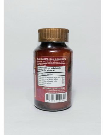Los componentes de este eficaz producto son la Maca negra, Huanarpo macho y Algarrobo.